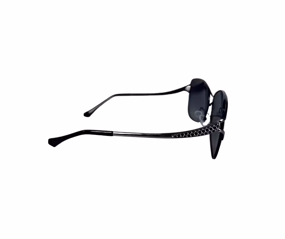 Disse solbrillene kombinerer et sofistikert uttrykk med høy funksjonalitet. Den mørke metallrammen gir et elegant, tidløst preg, mens de polariserte linsene sørger for optimal komfort og beskyttelse mot solens stråler.